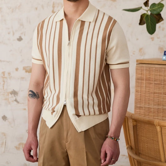 Vintage Stripe Cotton Knitted Short-sleeved Cardigan