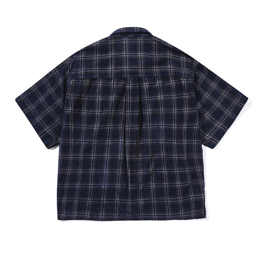 Summer Corduroy Plaid Casual Loose Men's And Women's Short Sleeve Shirt