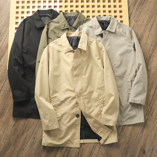 Solid Color Casual Polo Collar Mid-length Trench Coat Men