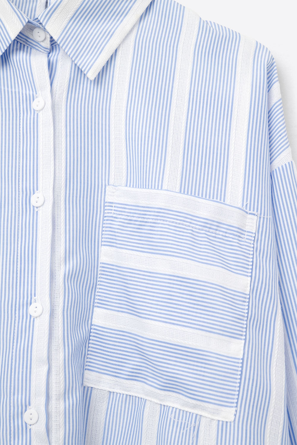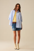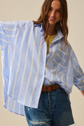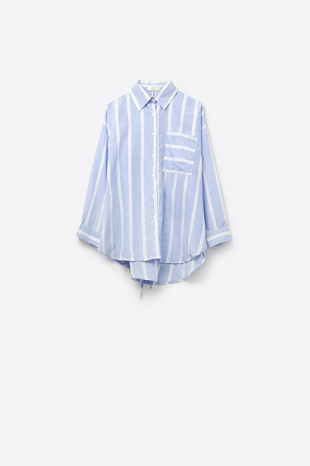 Blue and White Relaxed Fit Striped Shirt Tie at the Back