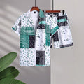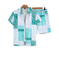 Contrast Color Retro Totem 3D Printed Shirt Shorts 2 Pieces Suit