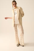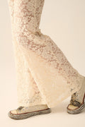 Cream Flare Pants in Floral Lace