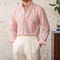 Linen Collar Slim Fit Business Casual Striped Long Sleeve Shirt