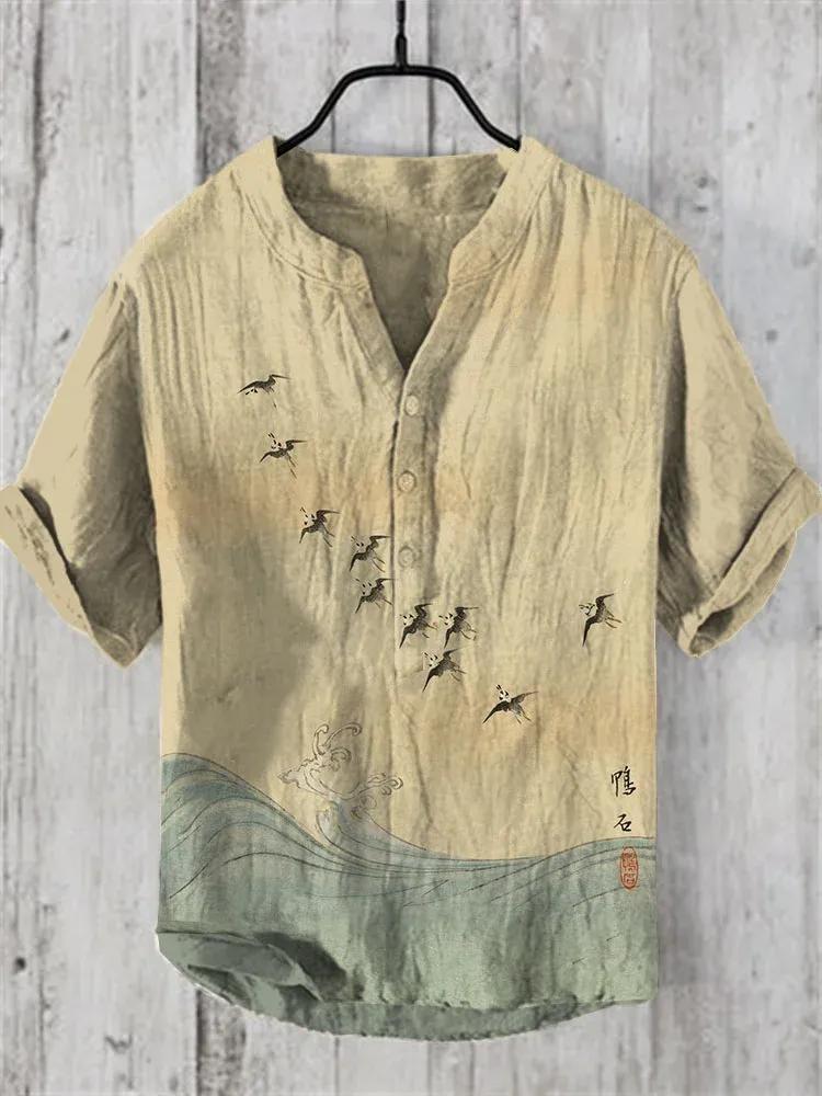 Short-sleeved Shirt 3D Printed Slub Casual Loose Pullover