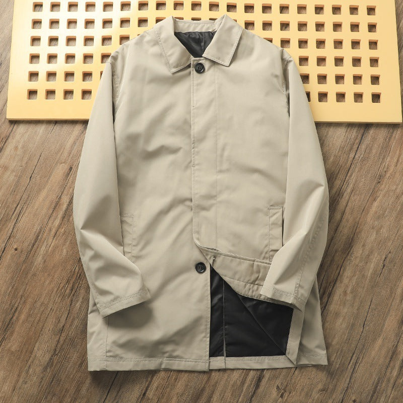 Solid Color Casual Polo Collar Mid-length Trench Coat Men