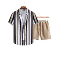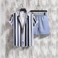 Striped Contrast Color 3D Printing Vacation Shirt Shorts 2 Pieces Suit